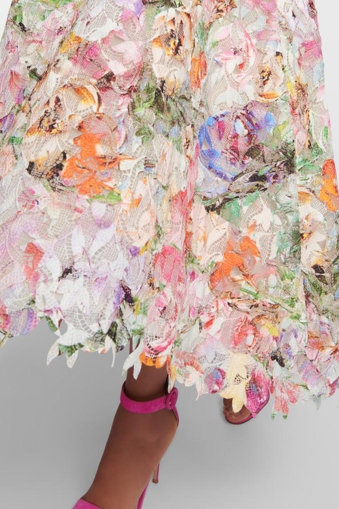 Make a statement with the Bellarose Floral Embroidered Lace Midi Dress, featuring intricate lace detailing and a vibrant mix of colors. The midi-length silhouette offers a flattering and elegant fit, perfect for summer soirées and special occasions. Crafted from lightweight, breathable fabric, this dress ensures both style and comfort.
